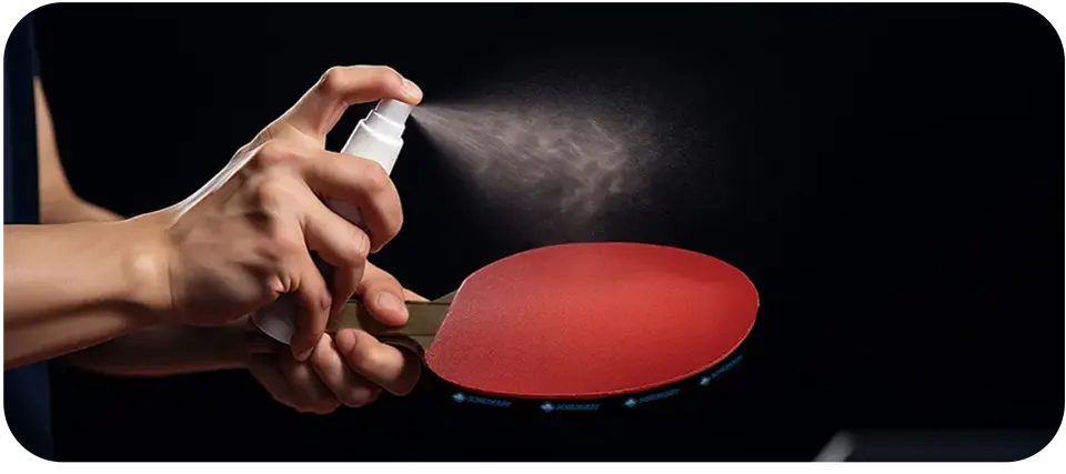 استفاده از اسپری تمیز کننده رویه راکت پینگ پنگ